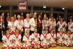 Die ausgelassene Stimmung im letzten Jahr schien sich herumgesprochen zu haben, denn in diesem Jahr stieg die Teilnehmerzahl auf fast 250 Jecken. Auf diese wartete ein volles Programm: Lieder der Prinzenpaare, Tanzauftritte und Ordensverleihungen.